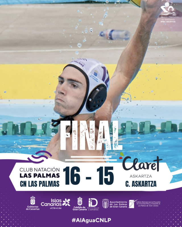 El Club Natación Las Palmas firmó una victoria de enorme valor en la Jornada 3 de la Primera División Nacional, imponiéndose por un ajustado 16-15 al Club Askartza en un encuentro vibrante que mantuvo la emoción hasta el último segundo.